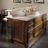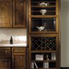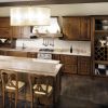 Выразительная кухня в изысканном и эффектном стиле итальянского прованса. Кухня представлена внушительным гарнитуром, который составлен всеми необходимыми рабочими столами - разделочными, а также столами с рабочими зонами - варочной панелью и мойкой, красивого большого буфета со стеклянными дверцами и встроенным винным шкафом, а также отдельно стоящего стола с барной стойкой.