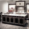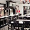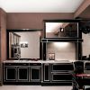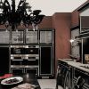 Эффектная кухня с невероятно выразительными зеркальными шкафами и общим зеркальным декором. Кухня выполнена в эффектном черном цвете с отделкой элементов фасада серебристым декором. Особенный шик модели придают зеркальные дверцы навесных шкафчиков, декор зеркалами вытяжного шкафа и панели, установленной над рабочим столом. Стильная итальянская кухня-столовая.