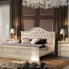 Гарнитур для меблировки стильной эффектной спальни. Гарнитур выполнен в цвете слоновой кости с изумительным золотистым декором и много численными красивыми резными элементами. В гарнитуре представлены двуспальная кровать, комод для спальни с выдвижными пятью ящиками, зеркало в резной раме, прикроватные тумбочки. Гарнитур возможно заказать по отдельным предметам меблировки.