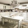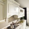 Эстетичная красивая угловая кухня. Кухня составлена шкафами напольными и навесными, имеет модели под встроенную технику, столы с рабочими поверхностями, эффектный вытяжной шкаф. Кухня представлена гарнитуром, который включает и обеденный стол, превращая представленную модель в кухню-столовую. Мебель - в белом цвете с золотистым декором. Все предметы мебели доступны в отдельности.