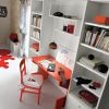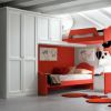 Красочная мебель, в которой удачно были смешаны светлые и красные оттенки, порадует вашего ребенка своей функциональностью. Набор состоит из двух кроватей, которые вмонтированы в большой шкаф для вещей. Рабочая зона обставлена удобным столом, стулом, дополнительно оборудована полками, где удачно разместятся игрушки, аксессуары и любимые книги.