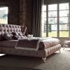 Искусно подобранная классическая мебель для спальной комнаты создает шикарную композицию из широкой кровати, удобной кушетки и маленького прикроватного столика. Модели изготовлены из массива дерева с отделкой по образцам производителя. Текстильная обивка изголовья и каркаса кровати выполнена в технике капитоне. Ножки изделий резные. Прикроватный столик оснащен выдвижным ящиком и открытой полкой. Завершенность композиции придают торшер на высокой ножке, роскошное покрывало с валиками и декоративными подушками.