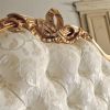 Двуспальная кровать с высоким изголовьем SISSY выполнена в классическом стиле. Каркас и ножки изделия изготовлены из массива дерева и декорированы сложными резными элементами. Отделка деревянных частей - золочение, обивка текстильная с техникой капитоне. В тон кровати представлены одеяло с валиками и покрывальце с декоративными подушками.