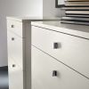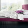 Эта композиция для спальни FORMAT состоит из кровати с прикроватными тумбочками и двух высоких комодов. Изголовье и каркас кровати в этом комплекте обиты тканью яркого цвета. Цвет ткани, по желанию заказчика, может меняться на любой из 16 вариантов коллекции производителя. Тумбочки и комоды с миниатюрными ручками покрыты лаком пепельно-серого цвета.
