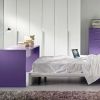 Этот яркий комплект для спальни в стиле модерн из коллекции FORMAT состоит из кровати с низкими прикроватными тумбами, стола с современным креслом и высокого комода. Белая матовая кровать простого дизайна сочетается с яркими глянцевыми предметами фиолетового цвета. Несомненно, изюминкой этого комплекта является кресло белого глянцевого цвета.