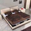Этот гарнитур для спальни от итальянской фабрики Mercantini состоит из четырех предметов. Кровать с удобным подкроватным ящиком для хранения на основе из древесины темного оттенка. Мягкое изголовье из ткани светлого цвета плавно переходит в основание кровати. Тумбочки у кровати и комод выполнены в одном цвете с обивкой кровати.