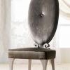 Высокий стул с необычной овальной спинкой и фигурным элементом у её основания сочетает в себе изящество и практичность. Сидение и спинка модели мягкие, каркас и ножки – деревянные. Варианты обивки и отделки на выбор из ассортимента компании.