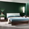 Угловая композиция для спальной комнаты из коллекции LOOK PROGRESS. Композиция состоит из двуспальной кровати с изголовьем, обитым искусственной кожей. Каркас кровати, тумб и комода выполнен из древесины темного оттенка. Фасады выдвижных ящиков покрыты белым лаком и дополнены узкими металлическими ручками. Завершает эту композицию зеркало в раме из древесины.