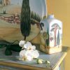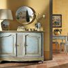 Столовый гарнитур в стиле кантри выполнен из массива натурального дерева с уникальной отделкой. При его изготовлении использовались различные приемы декора, такие как искусственное старение, броширование, окраска и покрытие лаком. 2-дверный комод и буфет с резными элементами. Створки буфета - стекло/глухие. Стол и стулья имеют изогнутые ножки, в столешницу вмонтирована керамическая плитка, спинка и сидение стульев изготовлены из соломы, что делает представленную мебель уникальной и в то же время экологичной. В дополнение прекрасно подобраны мелкие предметы интерьера: настольная лампа с абажуром, настенная тарелка, квадратная вазочка.