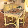 Уникальный гарнитур станет отличным выбором для кухни или столовой комнаты в деревенском стиле. Основа стола, стулья и 2-дверный комод с выдвижными ящиками изготовлены из массива дерева с применением искусственного состаривания, броширования и покрытия лаком. Уникальная терракотовая столешница изготовлена из мрамора и керамической плитки. Ножки изделий фигурные резные. Подставка для зонтов, настольная лампа с абажуром, картина в деревянной рамке украсят комнату и придадут ее интерьеру завершенности.