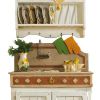 Кухонный набор состоящий из настенной сушилки для посуды, умывальника с мраморной столешницей и керамической раковиной, а также декоративной панели. Мебель изготовлена из натуральной древесины с эффектом состаривания и покрытой лаком. Прекрасный выбор для кухни в стиле кантри. Подставка для зонтов, напольная ваза и декоративная настенная тарелка прекрасное дополнение для уголка на кухне.