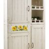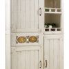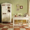 Комфортный столовый уголок, сочетающий в себе стол со стульями, буфет и тумбу с выдвижными ящиками, создаст приятную атмосферу на вашей кухне и в тот же час практичность. Мебель изготовлена из массива дерева с применением искусственного старения, окраски и покрытия лаком. Также производителем предоставленная возможность выбора декора с помощью разнообразных керамических вставок как на фасаде шкафов, так и на столешнице. Стулья деревянные с высокой спинкой из трех выгнутых поперечен и сидением, сделанным с добавлением соломы. Кухонная тумба с одной стороны оснащена перекладиной для полотенец, с другой – двумя внешними полочками.