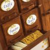 Буфет выполнен в стиле кантри из массива дерева, покрытого лаком. Буфет имеет 7 выдвижных ящиков, декорированных керамическими вставками, над которыми имеется дверца с ромбовидной решеткой из дерева. Модель предназначена как для хранения специй (о чем информируют надписи на керамике), так и для кухонного и столового текстиля. Доступные варианты буфета: одно- и двухстворчатый.