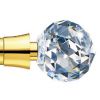 Наконечник карниза в виде хрустального шара. Карниз круглый, диаметр трубы 25мм. Труба выполнена в отделке полированной латуни. Вынос от 8, 13, 18 или 23 сантиметров. Число кронштейнов: 2, в зависимости от длинны трубы. Возможны другие варианты отделки трубы и наконечника из ассортимента компании.