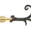 Карниз имеет наконечник в виде рогов. Труба диаметром 20мм., выполнена в отделке латуни. Вынос 8, 13, 18 или 23 сантиметров. Число кронштейнов: 2, в зависимости от длинны трубы. Возможны другие варианты отделки трубы и наконечника из ассортимента компании.