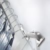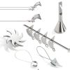 Карниз стальной. Модель отличается оригинальной конструкцией крепления, а также неординарными «кольцами» из проволоки с фигурными зажимами. Крепление позволяет регулировать уровень отступа от стены (потолка). Миниатюрный карниз имеет диаметр в 6 миллиметров, при этом он выполнен из высококачественной стали, что позволяет его использовать для удержания тяжелых портьер. Карниз представлен в одно- и двухрядном варианте.