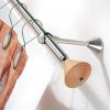 Карниз из стали с матовым покрытием, как круглой в сечении штанги, так и креплений. Карниз имеет фигурные наконечники из натурального дерева (вишня) различной формы. В качестве держателей для штор представлены клипсы, оригинальный крючок, классические кольца, карниз предусматривает двухрядное и однорядное исполнение, крепление можно выбрать и на стену, и на потолок.