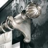 Роскошный с отделкой дерево с эффектом состаривания карниз. Модель представлена в варианте состаренное серебро, а также с гранатовым оттенком, отличается резным красивым наконечником и креплениями. Однорядная модель предусматривает монтаж второго ряда более тонкой штанги, крепление данного карниза предусматривает монтаж на стену. Держатели портьер и штор - классические кольца.