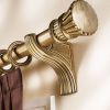 Красивый шикарный карниз с отделкой дерево, который отличается роскошным золотистым цветом с эффектом состаривания. Модель также представлена в варианте с эффектом цвета состаренная бронза, что придает ему особенный шик фешенебельности. Крепление и наконечники карниза имеют изящную резьбу. Карниз одно-, а также двухрядный, крепление на стену