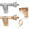 Карниз с отделкой дерево и покрытием сусальным золотом. Модель также представлена и в варианте с серебристой фольгой. Карниз отличается выразительным декором резными элементами, которые украшают, как крепления, так и наконечники и кольца для штор. Крепление возможно на стену, штанга устанавливается в один ряд. Модель станет настоящим украшением роскошных апартаментов.