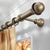 Изящный и деликатный латунный карниз с наконечником в виде шара с окантовкой «юбка». Модель представлена во множестве вариантов декора, разнообразии габаритов (диаметра) штанги, а также длины. Для карниза предложено матовое и глянцевое покрытие элементов с эффектом золото, серебро, изумруд. Карниз одно-, а также двухрядный, крепление стенное и потолочное.