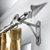 Стильный карниз с наконечниками в виде пик-стрел и эффектным медальоном, украшающим кронштейны. Модель выполнена из латуни, имеет два варианта цветового решения - покрытие с эффектом золото и серебро. Кольца для штор оригинально декорированы резьбой. Карниз возможно монтировать как на стене, так и потолке, есть возможность установки двухрядной, а также однорядной версии.