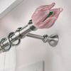 Карниз с очень красивыми наконечниками из мурановского стекла, которые эффектно сочетаются с латунными штангами матовой серебристой и глянцевой золотистой отделки. Наконечники выполнены в виде бутонов цветков, на выбор предложены изящные цвета - розовый, голубой и бирюзовый. Карниз возможно крепить к стене, либо потолку, есть возможность сборки двухрядного карниза.