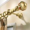Выразительный фешенебельный карниз с витой штангой и эффектными наконечниками. Модель представлена в нескольких вариантах декора штанги, а также цветовом решении резных наконечников. Варианты наконечников также отличаются отделкой, представленной в разных цветах. Карниз двухрядный, однорядный, крепление - стена, либо потолок.