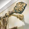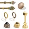Карниз с эффектным витым декором штанги, который также отличается выразительными резными наконечниками. Карниз представлен в нескольких вариантах отделки, наконечники и штанги выполнены в кирпично-золотистом цвете, а также изумрудно-золотистом, которые очень напоминают античный стиль. Доступен вариант монтажа как однорядного, так и двухрядного вариантом этой модели, крепление стандартно - на стену, либо потолок.