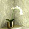 Бумажные обои с очень выразительным фактурным рисунком. Изображение нанесено акриловыми красками методом напыления, что придает определенный эффект рифленой поверхности. Сам рисунок выполнен в античном стиле - основной фон имеет ярко выраженный эффект состаривания, на нем расположены эстетичные завитки. Изображение создает неоднозначный эффект - завитки выполнены так, будто они вырезаны на каменной стене.