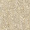 Красивые обои с рисунком, который напоминает изысканность чеканки и изящность росписи на стенах великих храмов и дворцов. Фон обоев нарисован в эффекте венецианской штукатурки, узор на которой составлен шикарными крупными виньетками и завитками из листиков. Обои возможно выбрать из ассортимента нескольких образцов: изумрудного цвета, графитового, золотистого, бронзового, серебристого.