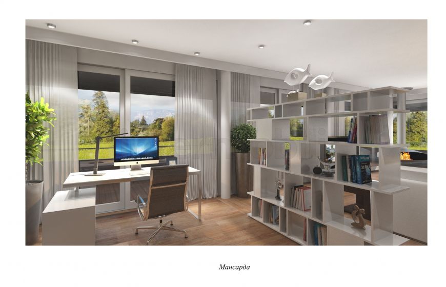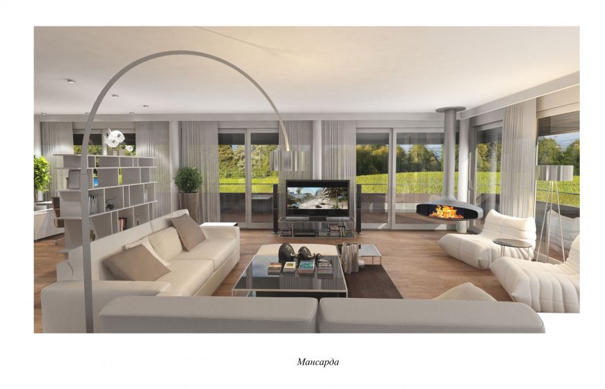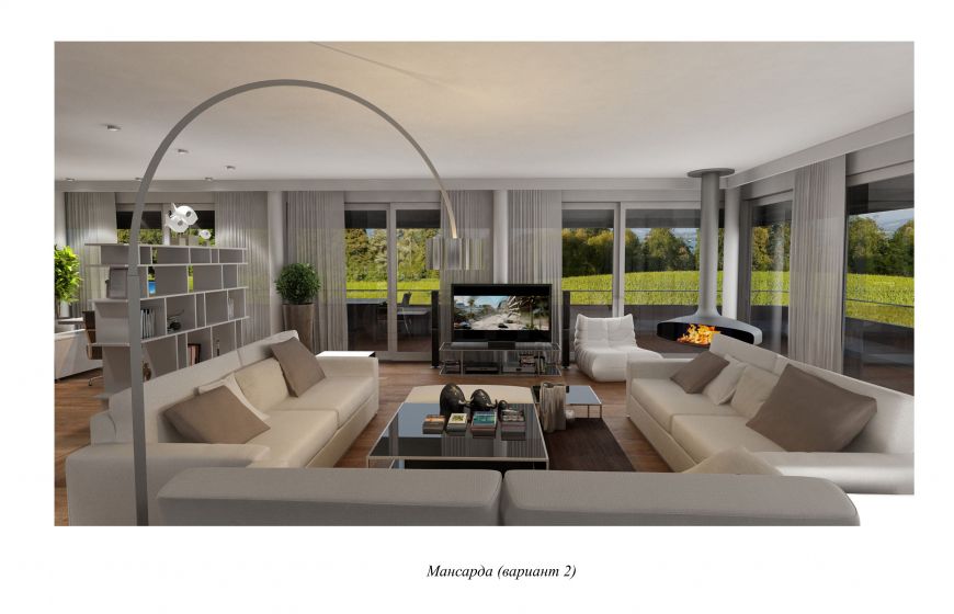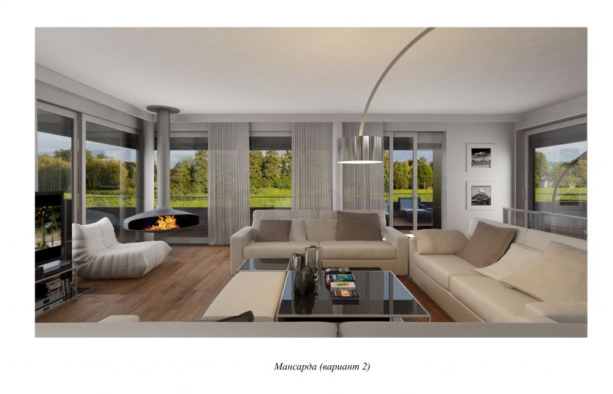 Мансардный этаж состоит из закрытой и открытой зоны.Один из вариантов перед Вами
