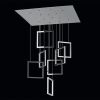 Светильники Tratto представлены люстрой с подвесками и бра или потолочником в виде квадратной рамы, дизайн которых красиво дополнит современный интерьер любой комнаты вашего дома. Структура моделей изготовлена из литого хромированного алюминия, а отражающая пластина люстры - из анодированного алюминия. Люстра оборудована семью подвесками в виде квадратных рам, в каждой из которых встроены по две светодиодные лампочки.