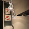 Стильные люстры для кухни CONO представлены в двух вариациях: с тремя подвесками и одиночным светильником. Изделия сочетают в себе внешнюю простоту и оригинальность исполнения. Модели имеют металлические каркасы из анодированного алюминия и стеклянные конусовидные рассеиватели. Люстры регулируется по высоте.