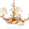 Люстра от итальянского производителя Eurolampard, в классическом стиле. На веточках, идущих из ценра в разные стороны , расположены 6 каралловых плафонов в форме ракушки с золотым напылением.