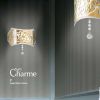 Светильник Charme выполнен из гнутого стекла, декорированного с помощью трафарета с изображением мягких линий, завитков и листьев. Узор выполнен из драгоценного металла - золото или платина, на Ваше усмотрение. Оосбенностью является то, что большинство моделей из данной коллекции возможно монтировать как на стену, так и на потолок. Непревзойденное роскошное сочетание золотого с белым наполнит помещение королевской роскошью.