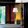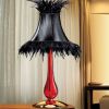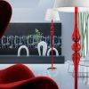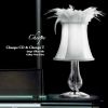 Светильник Stelo Cheope - абажур выполнен из атласа и шелка, дерорирован перьями, что создает образ легкости, воздушности и экстравагантности. В коллекции представлены - напольные светильники и настольные лампы. Основание выполнено из дутого стекла, что дополняет общую картину невесомости. Возможны различные цветовые исполнения. Также предусмотрены модели без перьев, которые отлично впишутся в классическую гостиную или спальню.
