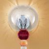 Удлиненный подвесной светильник Suite, состоящий из шаров, выполненных из разноцаетного стекла, разного размера. Таким образом люстра представляет собой образ цепи шаров. центральный шар выполнен из прозрачного стекла и является наибольшим по размеру среди остальных, остальные шары в цепи имеют рифленую поверхность и цветную окраску.