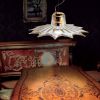 Подвесная люстра исполнена таким образом, что полностью повторяет форму цветка. Края люстры исполнены из цветного желтого стекла, а по центру имеется вставка из металла, вокруг которой также идет своеобразный окрас желтого стекла. Края люстры оформлены как лепестки и имеют аналогичную форму.