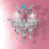 Люстра в классическом венецианском стиле, выполнена из цветного стекла. В качестве декора люстры добавлены элементы в виде разноцветных цветов и подвесок из шлифованного дутого стекла ручной работы. Возможен заказ обоих элементов коллекции - настенного бра и люстры.