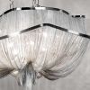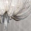 Люстра ручной работы, из серии эксклюзив. Выполнена в современном стиле, хай-тек. Модель округлой формы, состоит из двух уровней спадающих каскадом задрапированных цепей, сходящихся в одной точке. 10 лампочек. Отделки: никель, позолота, черный никель, бронза.
