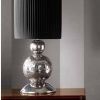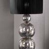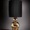 Экзотичная настольная лампа станет несравненным украшением интерьера спальной комнаты. Драпированный абажур цилиндрической формы черного цвета создаст романтическую атмосферу за счет равномерного рассеивания света. Особенностью дизайна является основание необычного дизайна. Два шарообразных элемента разного размера в отделке сусальным золотом, один из которых с эффектом искусственного состаривания. В наличие имеются модели в серебряной отделке.