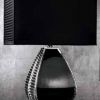 Настольная лампа - важный функциональный элемент интерьера. Утонченный дизайн светильника в классическом стиле. Прямоугольный рассеиватель из плотной черной ткани. Торцевые стороны с горизонтальной драпировкой. Модель на объемном керамическом основании черного цвета, оформленном в отделке глянцевым лаком с рифлеными боковинами серебряного цвета. В ассортименте лампы в отделке под золото.