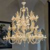 Новинка Sylcom из коллекции 2014 года - эффектная величественная подвесная люстра из трех ярусов, которая станет настоящим украшением столовой, гостиной, спальни. Основа и каркас люстры созданы из изысканных стеклянных дуг, лепестков цветов, миниатюрных колокольчиков, что выполнено в цвете слоновой кости с золотистым напылением.