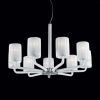 Новинка коллекции 2014 - подвесная люстра с выразительными белыми плафонами с "драпировкой". Изысканная люстра отличается оригинальной конструкцией, в которой использованы хромированные серебристые элементы, составляющие стильный ансамбль с дугами с белым напылением. Люстра станет отменным выбором для гостиной, столовой, спальни, как в классическом стиле, так и современных направлениях минимализма.
