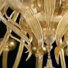 Роскошная, впечатляющая объемом и дизайном подвесная люстра из трех шикарных ярусов. Люстра рассчитала на 28 ламп, отличается изящным дизайном, представляющим композицию дуг и лепестков из дымчатого стекла топазового оттенка с утонченным и роскошным декором - напылением 24-каратной позолотой. Люстра относится к новой коллекции Sylcom 2014 года.