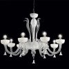 Люстра из белого и прозрачного стекла. Люстра представлена в одном ярусе, который объединяет 8 ламп в изящных чашах-плафонах. Композиция светильника составлена из изысканно изогнутых дуг, эффектных лепестков, окаймляющих основу, маленьких колокольчиков, подчеркивающих низ люстры. Выполненная в элегантном классическом стиле, люстра станет прекрасным выбором, как для гостиной и спальни, так и роскошного дизайна в столовой.