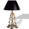 Невероятно изысканная настольная лампа с черным абажуром из сатина, который отделан по краю бархатной окантовкой. Ножка лампы выполнена в изящной композиции четырех стоек, овитых ветвями роз. Цветы выполнены их фарфора, композиция ветвей - позолоченная, с эффектом состаренной бронзы. Эффектная лампа для спальни, гостиной, прихожей.