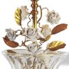 Восхитительная настольная лампа с оригинальным исполнением основы и ножки в виде композиции из вазы с букетом нежных роз. Позолоченные ветви и листья в букете эффектно сочетаются с фарфоровыми цветами. Абажур выполнен из плиссированного сатина темно-фиолетового цвета с отделкой по краю «позолоченной» бархатной лентой. Изысканная лампа для классического, античного, романтик интерьера.