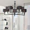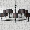 Эффектная люстра с плафонами в форме кубов. Плафоны-кубы расположены на разных уровнях, удерживаются на г-образных стойках, что вместе создает оригинальную геометрическую композицию. Материал плафонов выполнен в монохромную полоску, ткань - выразительная фактурная. Люстра декорирована черными кристаллами, выполненными из мурановского стекла.
